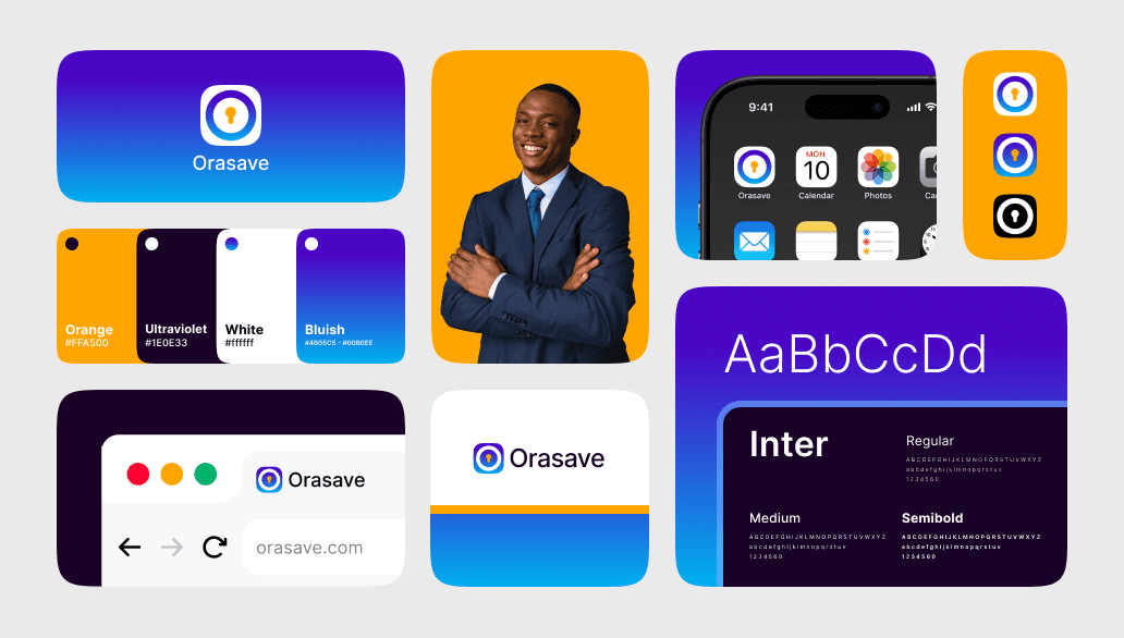 A quiet but important part of the project was the brand identity. Orasave already had brand colours people recognized, but not well presented. Redesigning everything from scratch risked alienating existing users. So I improved the logo/app icon with some restraint, desiand introduced consistency through typography and layout